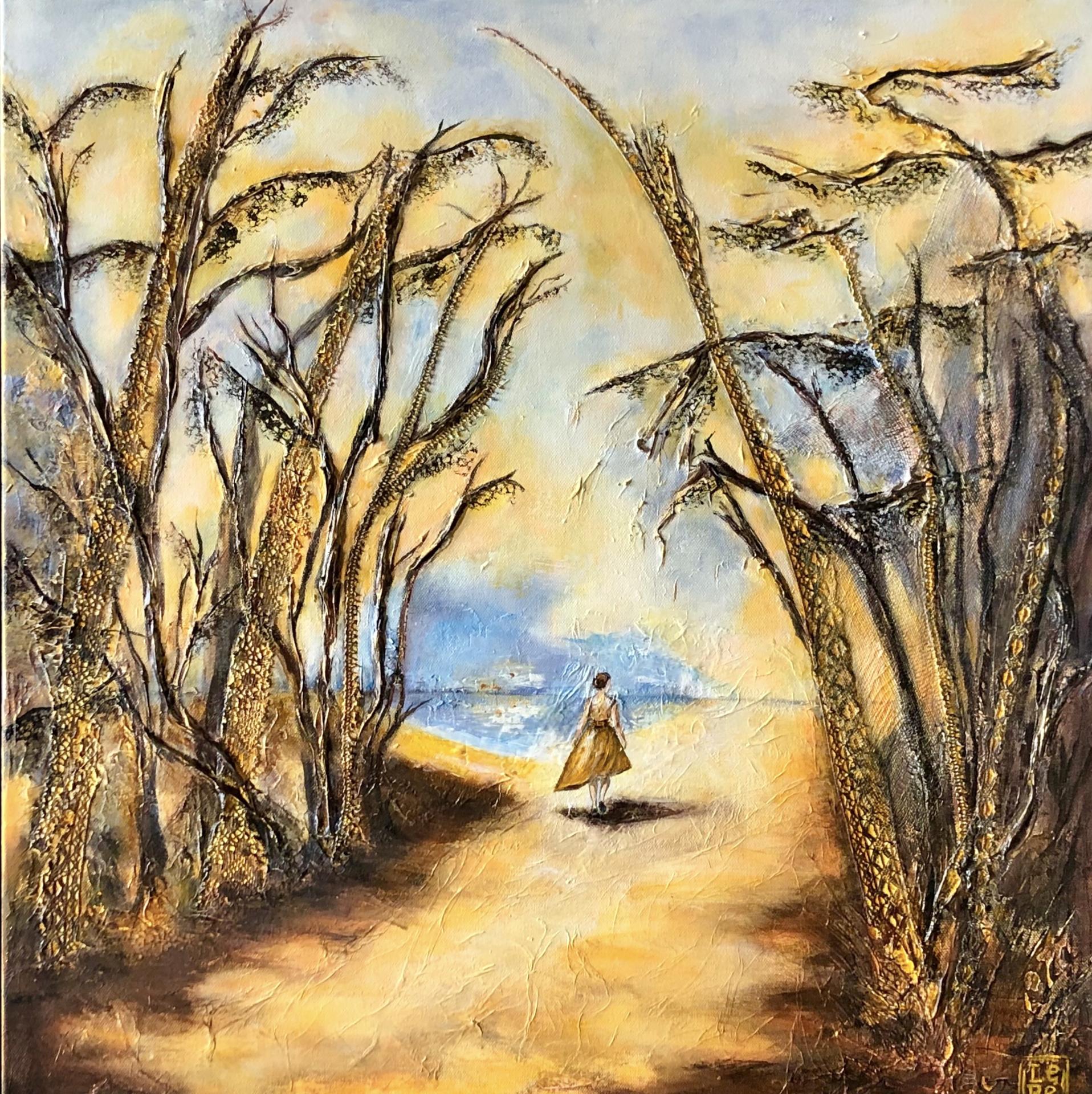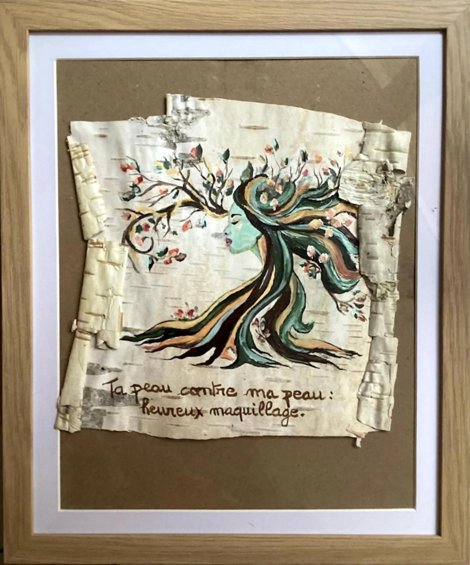 Illustration d'une réalisation de la poétesse Annick Dantzer (peinture sur écorce de bouleau) :